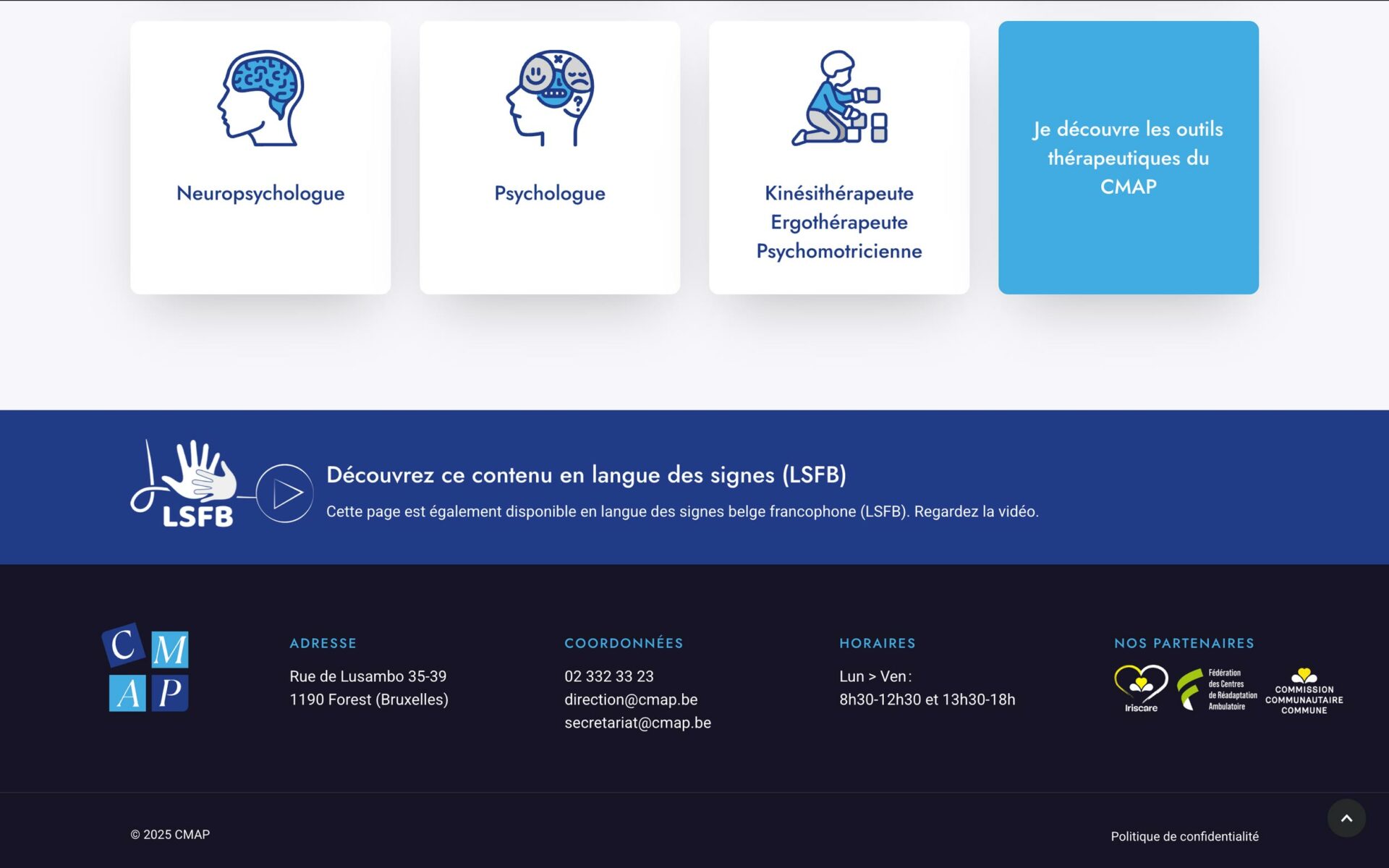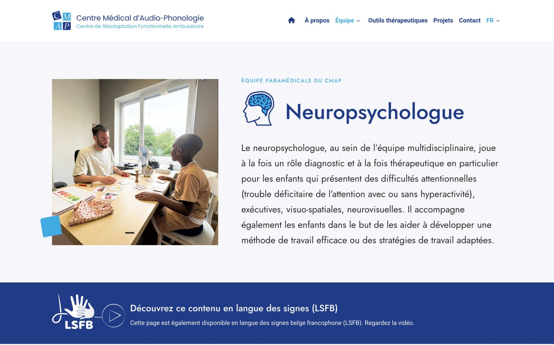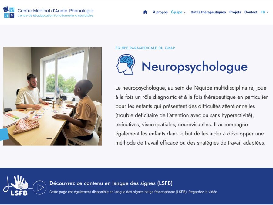 - S’inscrire dans une démarche d’accessibilité et d’inclusion en veillant à ce que notre centre de revalidation fonctionnelle ambulatoire rende son nouveau site internet compréhensible pour toutes et tous, y compris les personnes sourdes ou malentendantes.